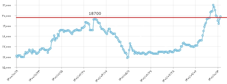 تصویر زیر نمودار قیمت میلگرد ذوب آهن اصفهان سایز 12 را در یک سال گذشته نشان میدهد که قیمت میلگرد از ابتدای سال 1401 از قیمت 18500 تومان تا 16000 تومان در شهریور ماه کاهش پیدا کرده بود . و سپس از از آدر ماه تا دی ماه به قیمت 21000 تومان افزایش پیدا کرده است.